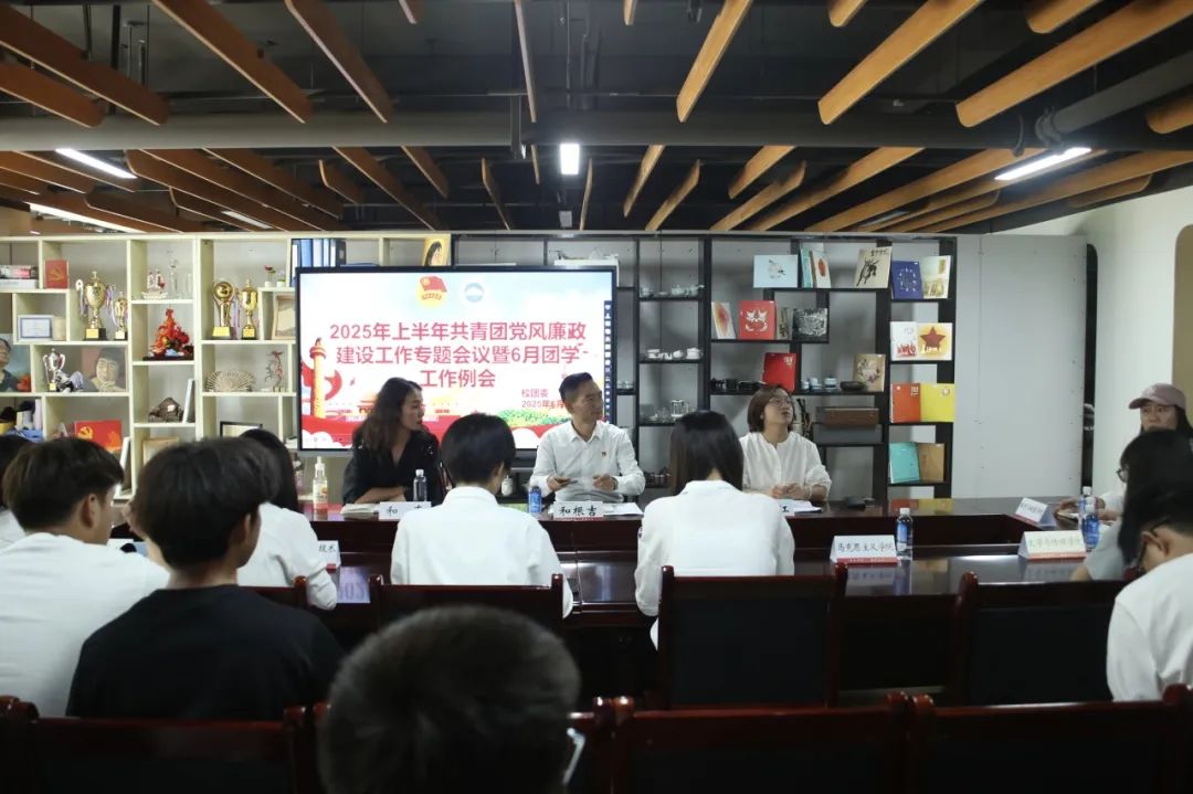 2025年6月27日中午,校团委在我校东苑4栋团学活动中心组织召开党风廉政建设工作专题会议暨6月团学工作例会。会议由校团委书记和根吉主持,校团委副书记周江、校团委办公室主任和声、各学院团总支书记、校级团学各部门负责人、社团代表、各学院团学干部代表参加。