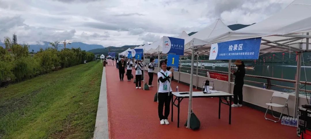2022年7月2日下午, 云南省第十二届少数民族传统体育运动会第二赛段落下帷幕。该赛段共有5个项目,分别是龙舟、高脚竞速、板鞋、抢花炮以及蹴球。为了促进此次比赛顺利进行,在6月27日早晨七点丽江师专70名志愿者们集中有序从学校出发前往赛事酒店,到达目的地后听从安排,分配好各自的岗位。