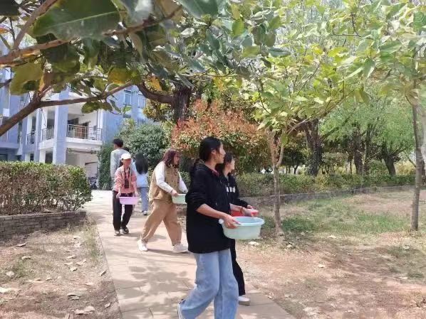 中午两点整,活动正式开始,同学们拿着自己的盆和桶,紧跟着工作人员到相应的浇水地点。活动中,同学们端着盆,提着桶,兴致勃勃地为校园里的小树们进行浇灌,大家热情高涨,人人都当起了“园艺工程师”,在同学们的辛勤劳动下,每一棵树都“喝足了水”。
