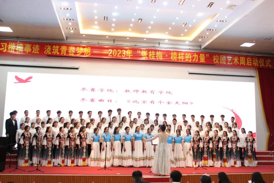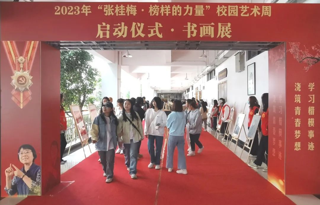 2023 年“张桂梅——榜样的力量”校园艺术周系列活动在本周落下帷幕,学校通过组织讲述张桂梅老师故事、书画展、合唱比赛、演讲比赛、征文比赛等活动向张桂梅老师致敬,传承红色基因,赓续红色血脉。