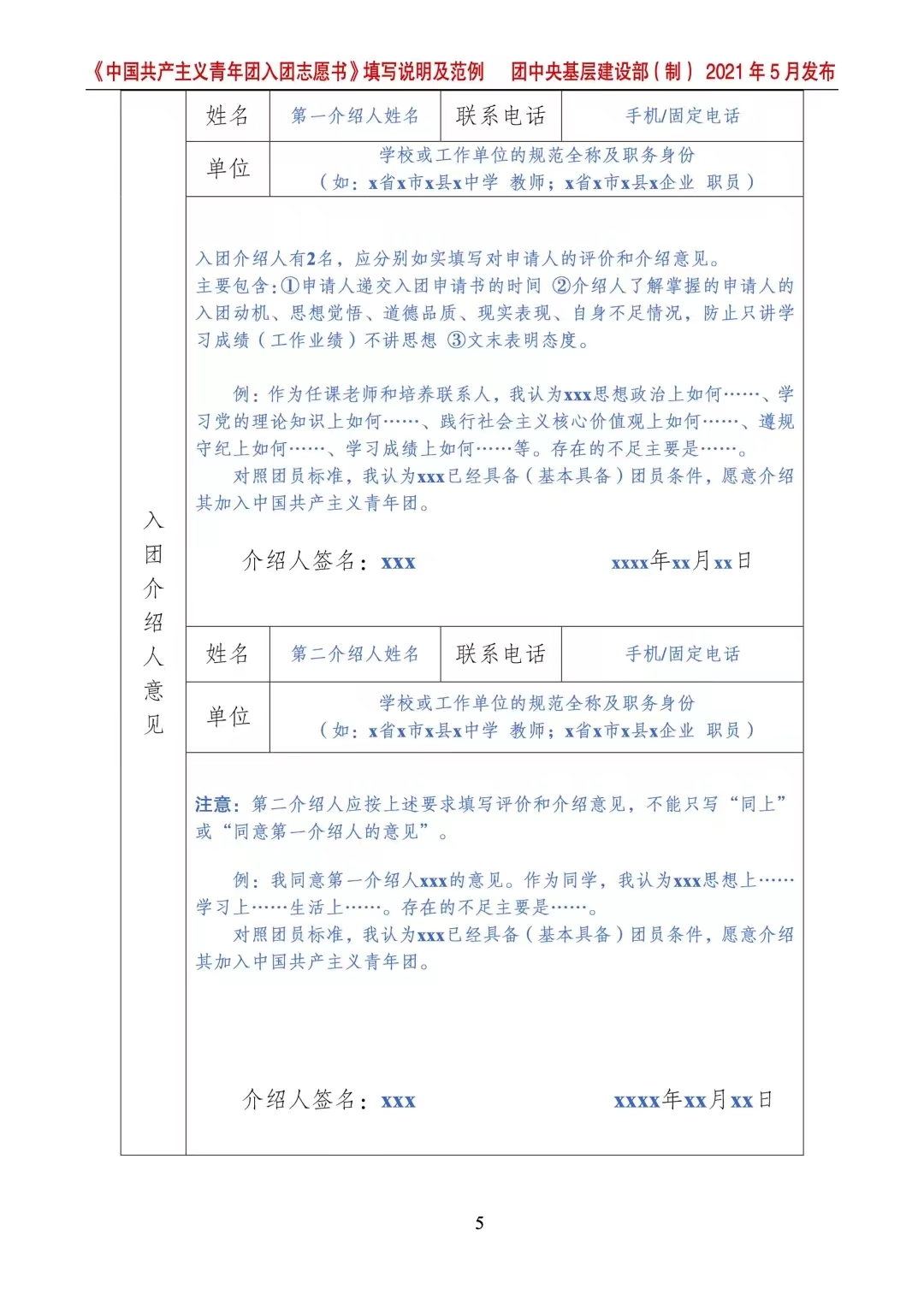 工作中发现,有的地方在填写、审核入团志愿书过程中存在指导不具体、填写不规范、审核不细致、审批不严谨等问题,影响了发展团员的质量和工作的严肃性、规范性。为加强具体工作指导,团中央基层建设部制定了入团志愿书填写说明及范例,供广大基层团组织、团干部和入团积极分子学习掌握。