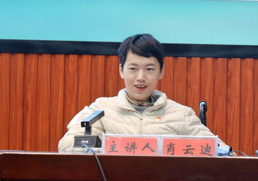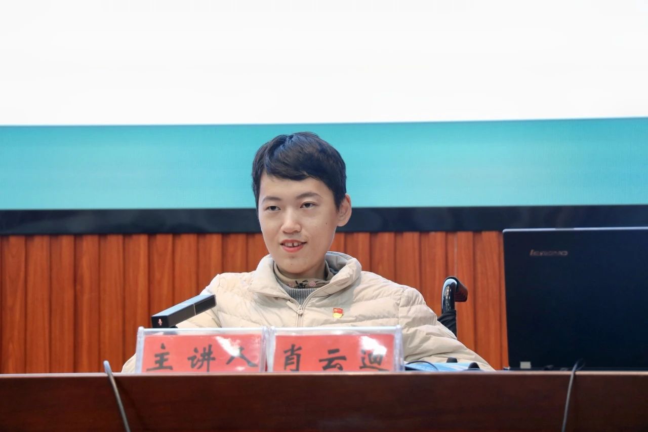 卢梭曾说过:“感谢生活给我的一切不幸。”拥有积极乐观的生活态度,人生就是甜的。在面对命运的不公,她仍能乐观面对,创造属于自己精彩的人生;她像颗星星一样,坐在轮椅上闪闪发光。2023年12月8日,丽江师范高等专科学校在图书馆报告厅举行了“坚定理想信念,谱写无悔的青春之歌”主题讲座。出席本次讲座的有校团委书记和根吉、校团委副书记周江、以及学生代表400余人。本次讲座邀请到了云南财经大学经济学院2021级数理经济专业学生肖云迪同学为师生分享她的成长经历。