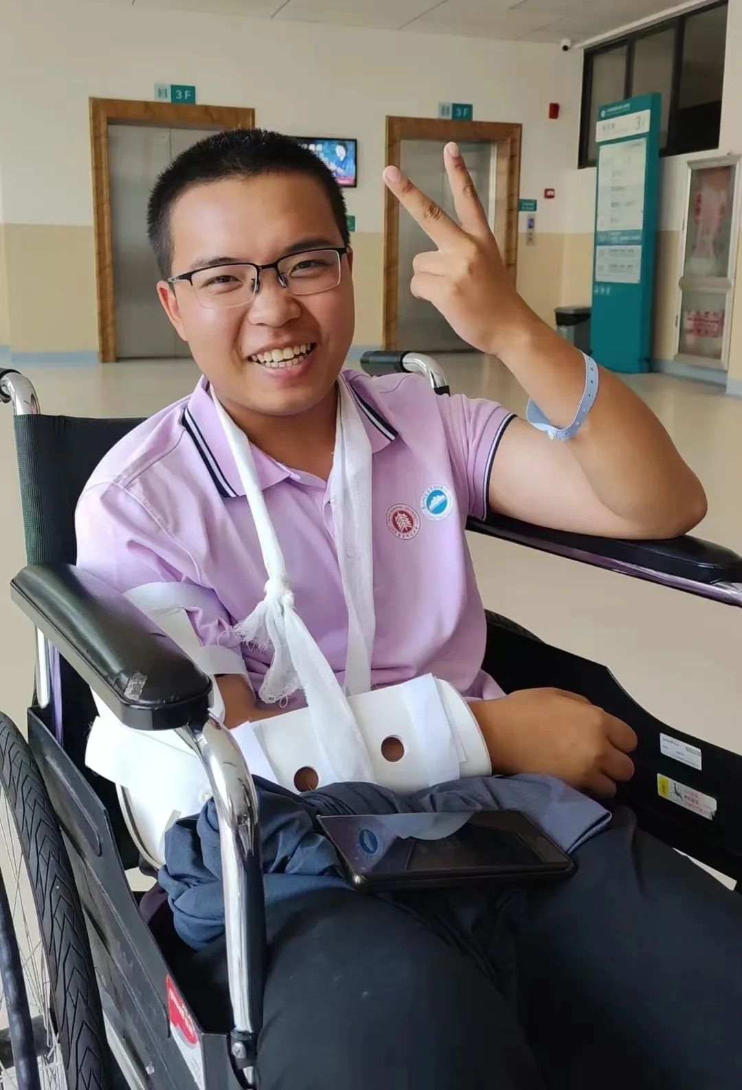 这些成绩的背后,离不开他的努力与坚持。去年7月,在第九届云南省“互联网+”大学生创新创业大赛现场赛杯赛期间,他因为通宵备赛,在支教期间,因为精神恍惚,从讲台上跌伤,摔断了右手。手术后,他顾不得休息,坚持备赛。术后三天,他不顾医生和家人的反对,毅然决然地选择去参加现场赛。很多人都在问他,你为什么打着石膏都要坚持去参加现场赛。他只是说“这是一次来之不易的机会,这次机会是指导老师和团队成员共同努力才换来的。此外,参加‘互联网+’现场赛也能实现上一届学长学姐的愿望。”