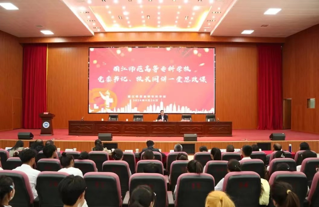 表彰大会结束后,举行党委书记、校长“同讲一堂思政课”活动,本次思政课由党委副书记、校长陈本辉主讲,党委副书记彭鸿昌主持。