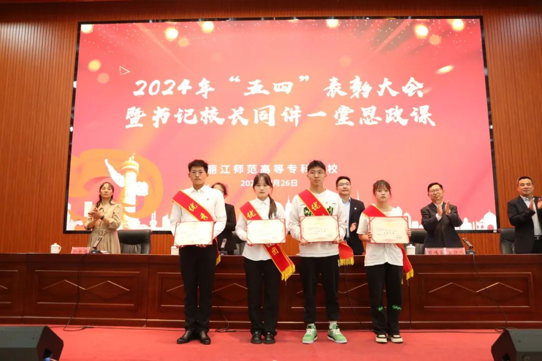 为凝聚丽师青年师生力量,表彰2023年度为学校团学工作作出贡献的优秀青年,4月26日,学校在图书馆报告厅举行2024年"五四"表彰大会暨书记校长同讲一堂思政课活动。活动由党委副书记彭鸿昌主持。
