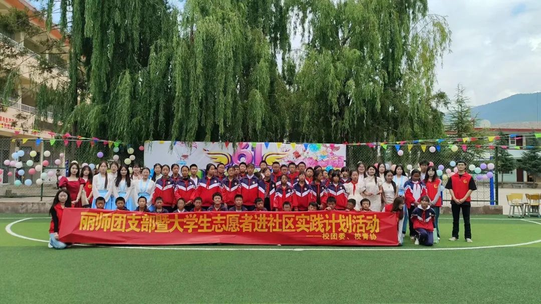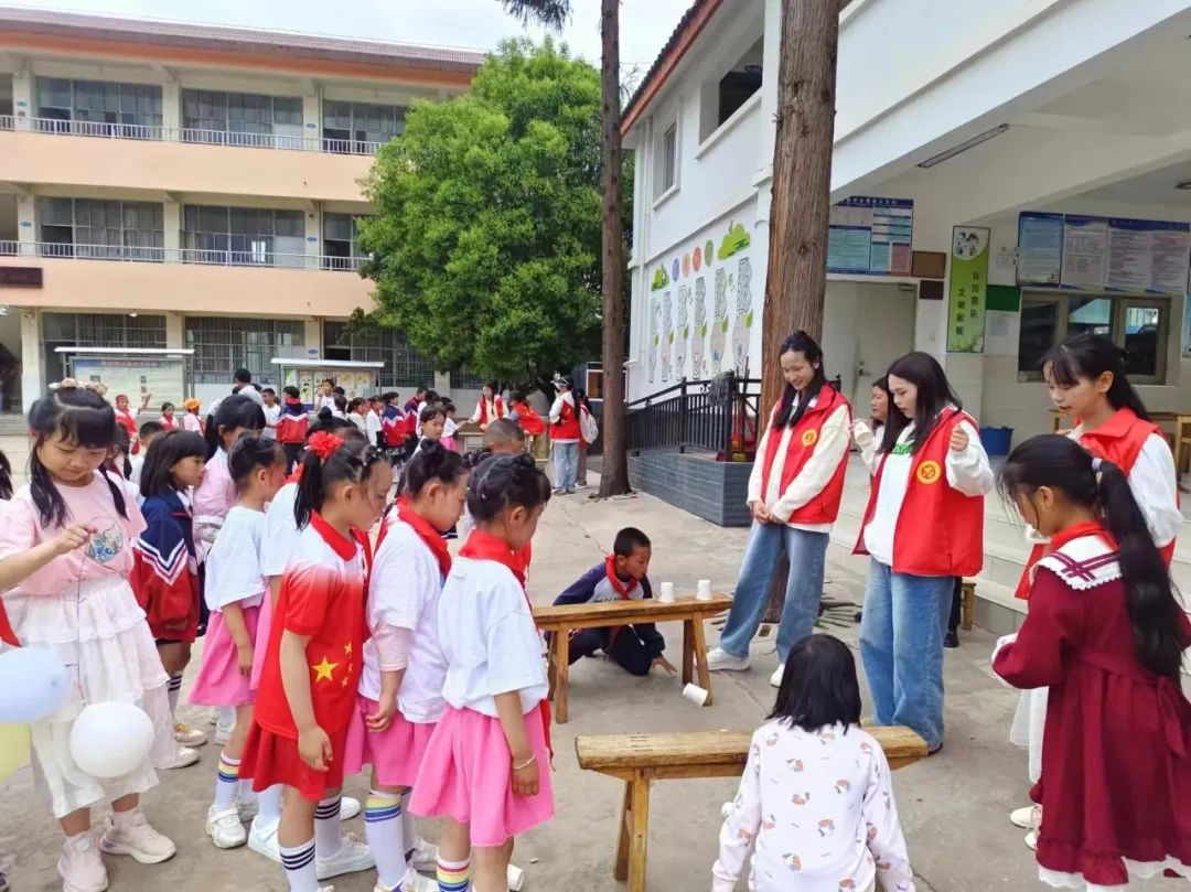 2024年6月1日是第74个国际儿童节。为迎接六一国际儿童节,让小朋友们度过一个快乐而有意义的节日,5月31日上午10点整,志愿者们穿着整齐,在丽江师范高等专科学校青年志愿者工作站的带领下,精神饱满的进入到丽江市金山中心校新团完小,与小朋友们一起度过了一个快乐且有意义的六一。我校志愿者们与新团完小的小朋友们一起参与了六一汇演,给小朋友们献上了精彩的歌曲舞蹈,为他们送去了真挚的祝福。随后,志愿者们还为小朋友们准备一系列的游园游戏,如纸杯运球、盲人击鼓等等,同时,还设奖品兑换区,使小朋友们可以用游戏积分兑换心仪奖品。在这一天,小朋友们和志愿者们都积极参与,搭配默契,使现场欢笑不断。志愿者们也用自己的辛勤付出,为小朋友们的童年留下了美好的回忆。