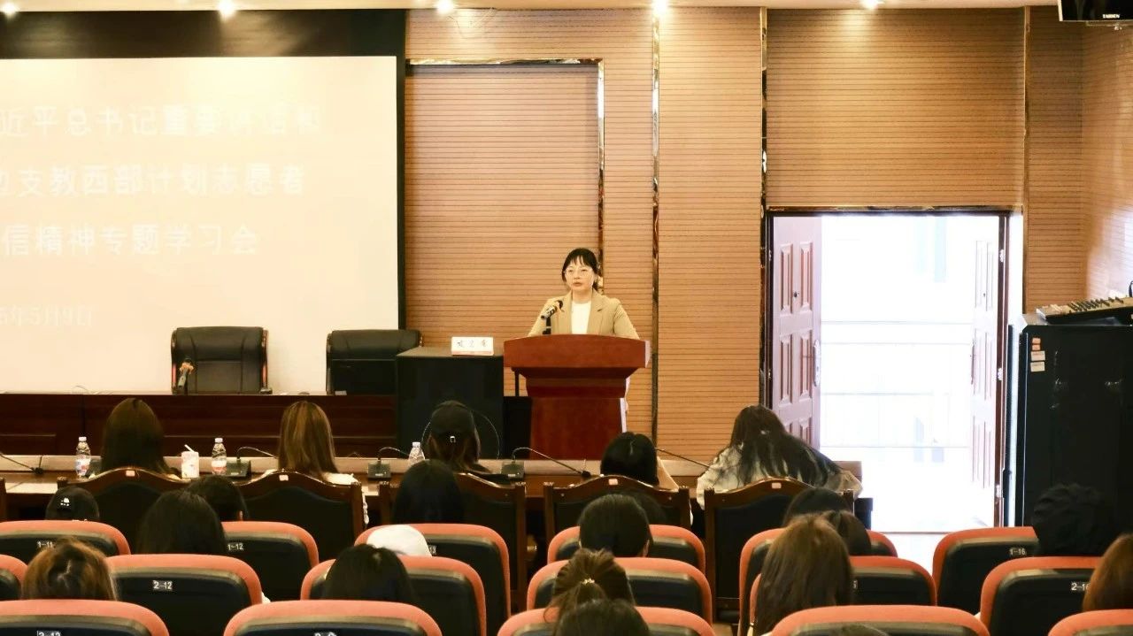 2025年5月9日上午,丽江市学生联合会在我校举办学习习近平总书记重要讲话和给谢依特小学戍边支教西部计划志愿者服务队队员回信精神专题学习会。