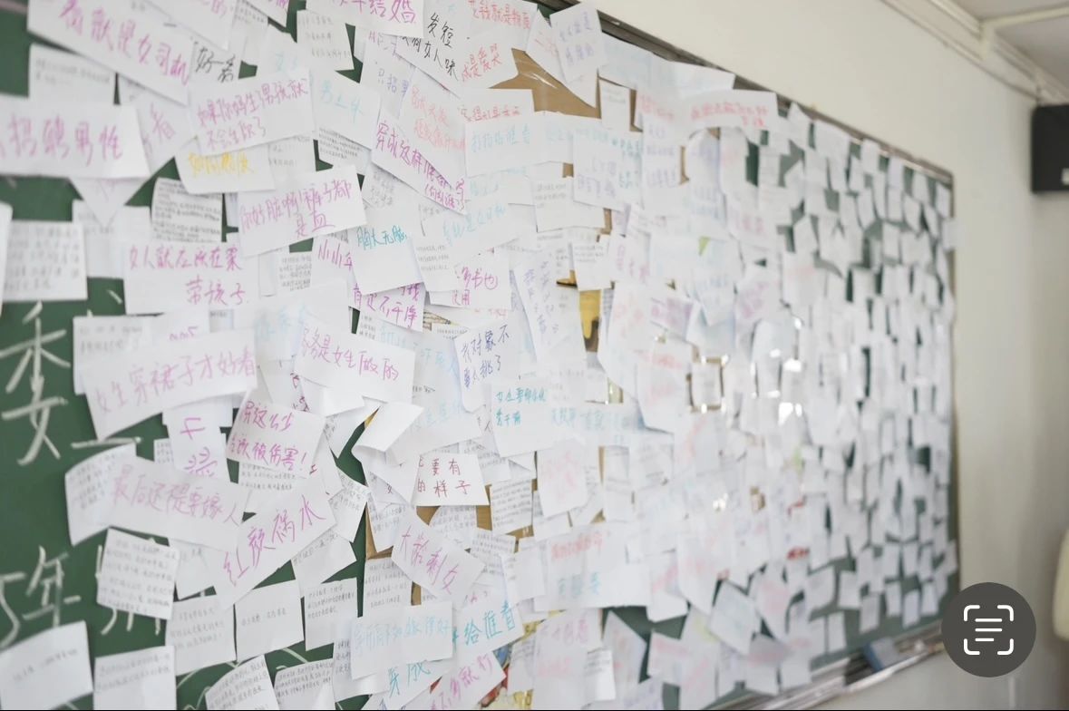 活动现场,黑板上贴满了诸如“头发长,见识短”“女生应该温柔”等针对女性的刻板印象标签。同学们纷纷上前,将这些标签一一撕下,并在便签纸上写下对女性和母亲的美好祝福,重新贴在黑板上。“女性拥有无限可能”“独立自强”…… 一句句充满正能量的话语,覆盖了整个黑板,成为校园里一道独特的风景线。