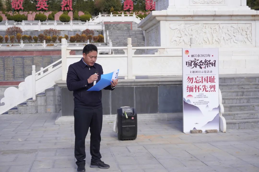 为大力弘扬以爱国主义为核心的民族精神,引导团员和青年树立铭记历史、勿忘国耻、珍爱和平的坚定信念,营造勿忘国耻、牢记历史,珍爱和平、圆梦中华的浓厚氛围,推动团员和青年主题教育走深走实,在第10个南京大屠杀死难者国家公祭日,团市委联合市退役军人事务局、丽江师范高等专科学校团委、丽江职业技术学院团委在丽江市烈士陵园开展2023年丽江市“勿忘国耻 缅怀先烈”国家公祭日示范主题团日活动。丽江师范高等专科学校和丽江职业技术学院的团员和青年共计200人参加活动,团市委副书记李万林主持活动。