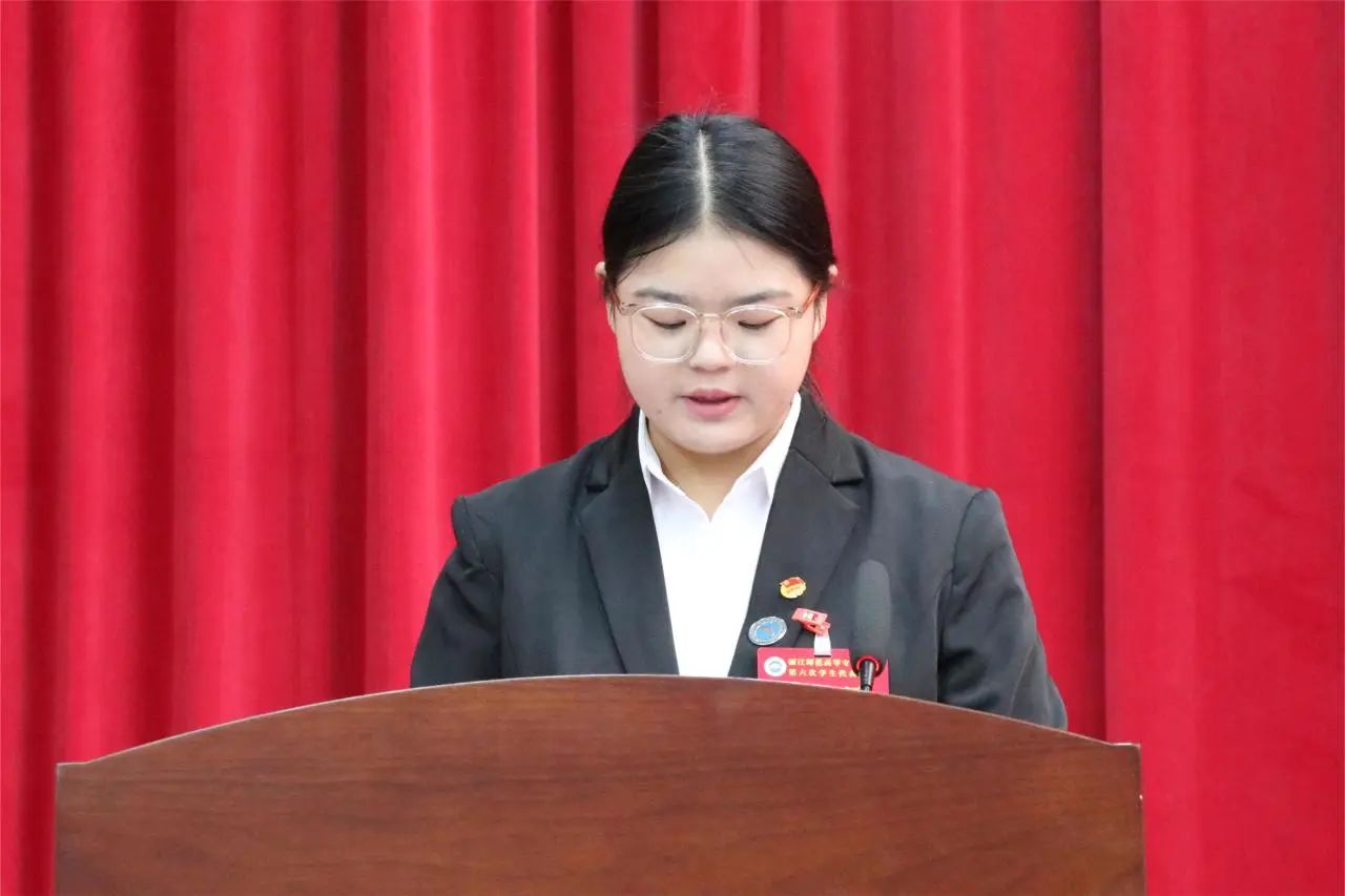 学生会代表蒋小思对过去一年的工作做了报告,校学生会一直坚持“以学生为中心,以创新为发展”的理念为同学们带来专属于丽师人的温暖。强调要注重服务渗透,积极开展具有学校特色的文化活动丰富校园生活。最后也对接下来的校学生会工作做出以下几点展望:正确把握政治方向:牢记宗旨,不断提升服务质量:聚焦重点,突出问题;畅通渠道,切身维权。并号召广大青年学生书写令人满意的答卷,跑出加速度,贡献丽师青年智慧。