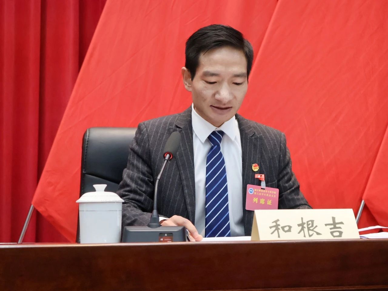 全体代表奏唱《国歌》后大会正式开幕。和根吉向长期以来对学校青年工作给予关心、支持和帮助的团省委、省学联、市学联和兄弟院校表示衷心的感谢,受学校党委的委托,和根吉向大会的召开表示祝贺,向工作人员以及筹备者的付出表示感谢,向全体参与人员表示殷切的问候。自我校第五届学生大会以来学校学生会深入贯彻落实习近平新时代中国特色社会主义思想和习近平总书记关于青年工作的重要思想。在省学联,团市委,市学联和团委的指导下,充分的发挥了学生会桥梁和纽带的作用。他指出,丽师青年要不断学习习近平新时代中国特色社会主义思想,深入贯彻党的二十大精神,听党话,跟党走,树立自信自强的人生观,做新时代的青年。