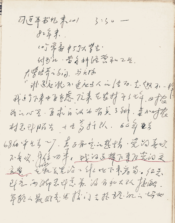 徐南雄:当时见面的情景,历历在目。那天我们与习书记约的4时见面,大概3点半多一点,我们就到县委招待所大门进来以后的空地上等习书记。招待所的院子里面有个水池,水池里有一座假山,我们就站在那儿边等边聊天。我笔记上有记录:习书记大概3时45分就来了。他个子比较高,穿着绿色的军裤,是一个人骑自行车来的,也没有别人陪着,把自行车放一边就进来了。我们队里的萧燕老师也是陕西知青,他是著名作家萧军的儿子,当时校刊的摄影记者,他与习书记聊了十来分钟当知青的体会。然后,我们就进到房间里面座谈了大概两个小时,交流气氛轻松热烈。习书记讲话坦诚直率、生动形象,且富有哲理、思想深刻,对我的启发很大,感触良多。当天晚上,我用日记的形式写下了习书记讲话的要点。这次社会实践的笔记本一直被我精心保存,成为一段历史的见证。