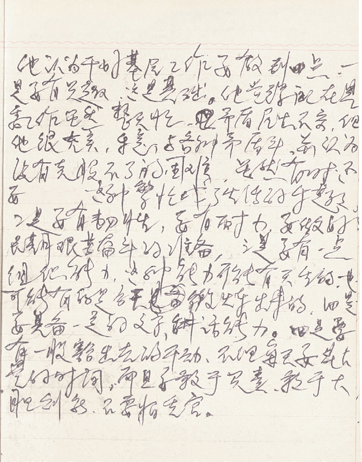 习书记说,基层干部工作很辛苦,工作难做,但他们要求很少,有时只要上级对他们给予肯定和表扬就很满足了。因此,他对基层干部有一种肃然起敬的感情。当时基层干部要做工作是挺困难的,经常在外面跑,工资很低,跟农民打交道,有时还得自己掏钱给老乡买烟抽。对于基层干部,不能只让他们做工作,也要关心他们,爱护他们,鼓励他们。
