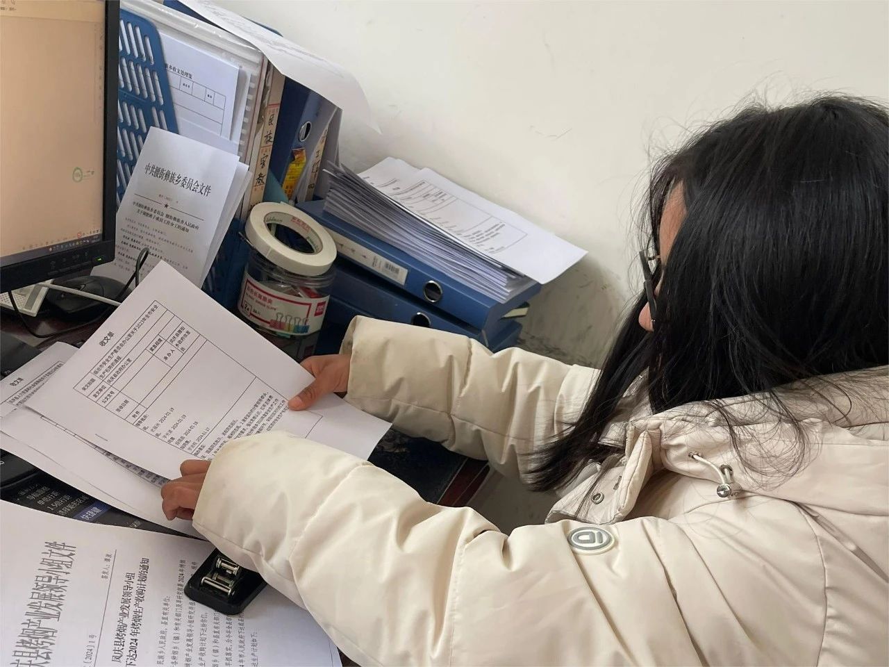 来自学前教育学院的周琴同学,在临沧市凤庆县腰街彝族乡政府进行社会实践,协助当地政府工作人员们进行收文、打印资料、整理材料。经过本次实践活动让周琴同学有机会走入基层,了解到基层工作的艰辛与不易,使她可以在未来始终保持严谨认真的工作态度和一丝不苟的工作作风,对自己高标准、严要求,为家乡建设贡献青春力量。