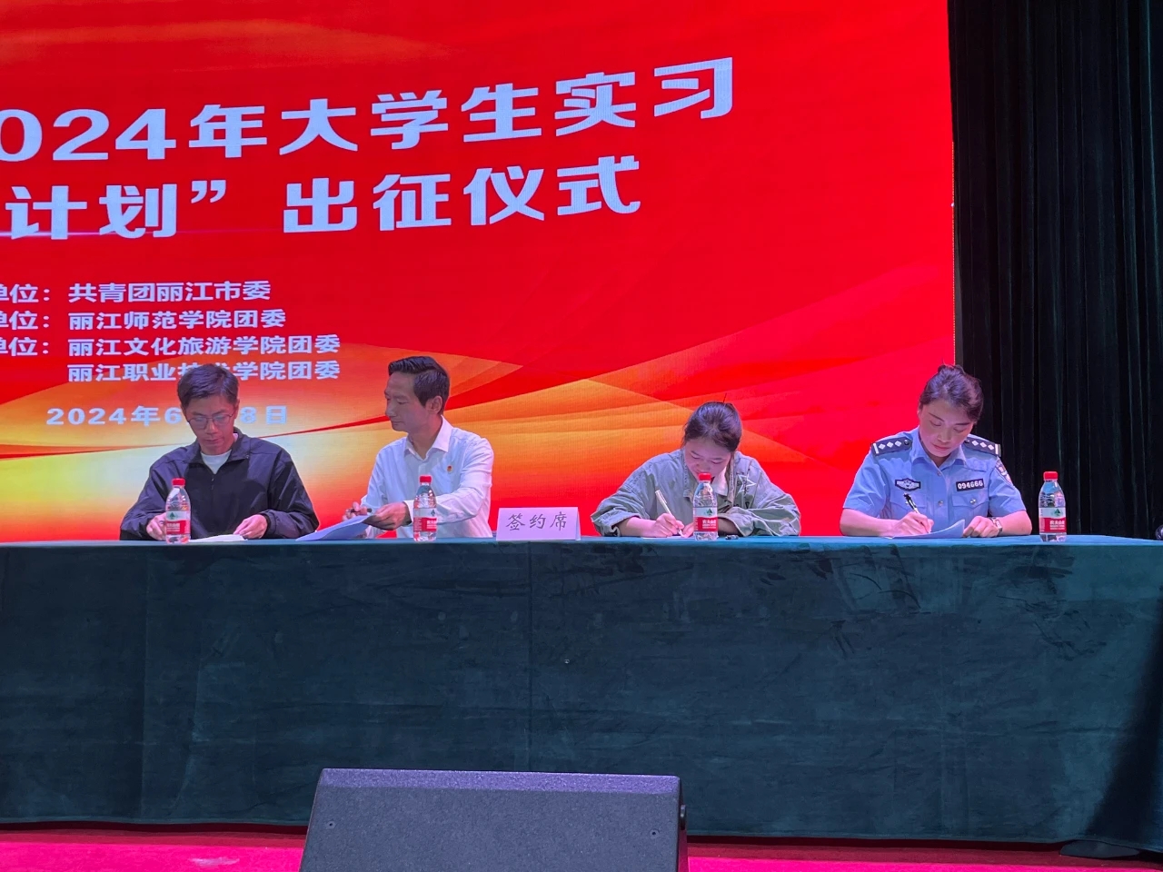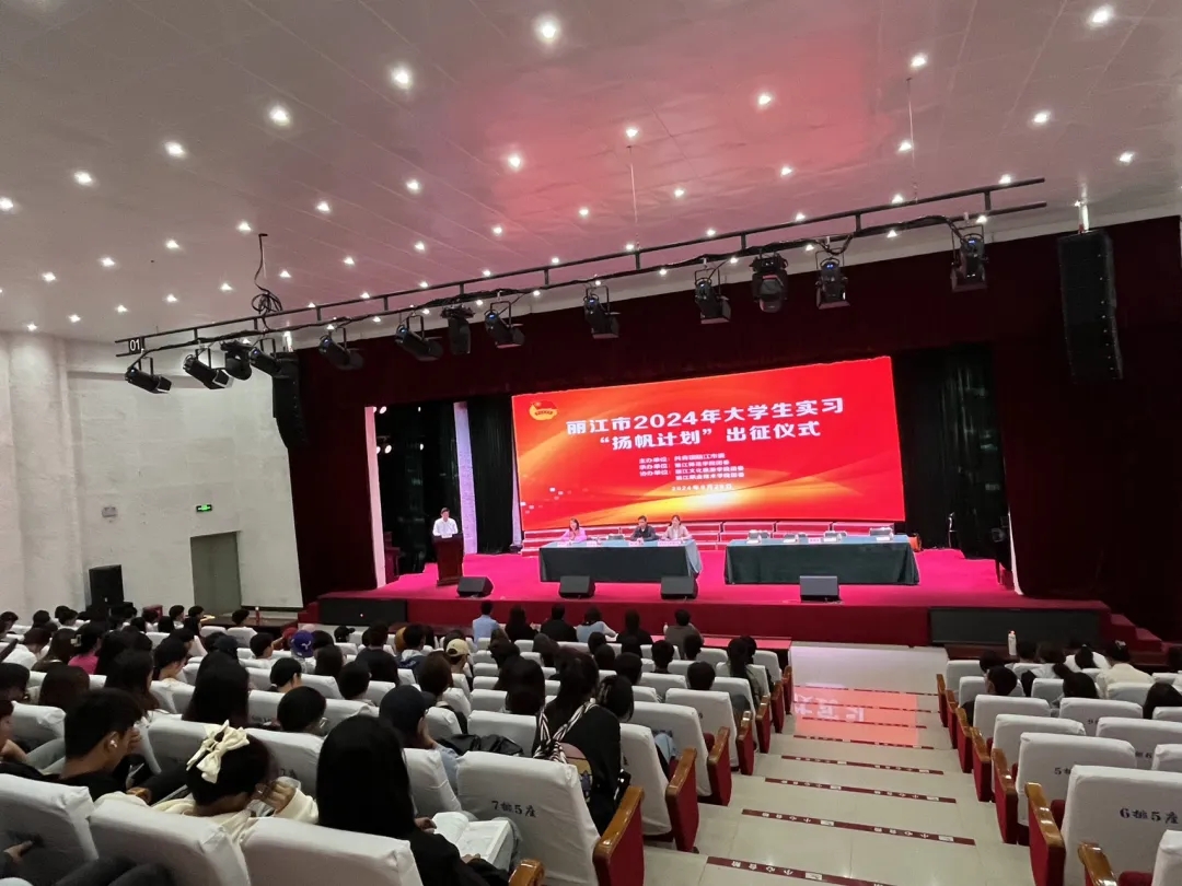 为抓好大学生群体就业,落实落细稳就业举措,贯彻落实团中央关于共青团促进大学生就业行动、《云南省支持青年创业兴乡三年行动(2024—2026年)》和云南共青团 2024年“团团陪伴·‘就’有‘位’来”促进大中专学生就业行动的工作部署要求,深入推进大学生实习、就业服务工作,6月28日,共青团丽江市委、丽江师范学院团委、丽江文化旅游学院团委、丽江职业技术学院团委联合举办的丽江市2024年大学生实习“扬帆计划”出征仪式在丽江师范学院举行。各主办单位相关负责人、实习单位代表,三所高校实习大学生共120余人参加出征仪式。