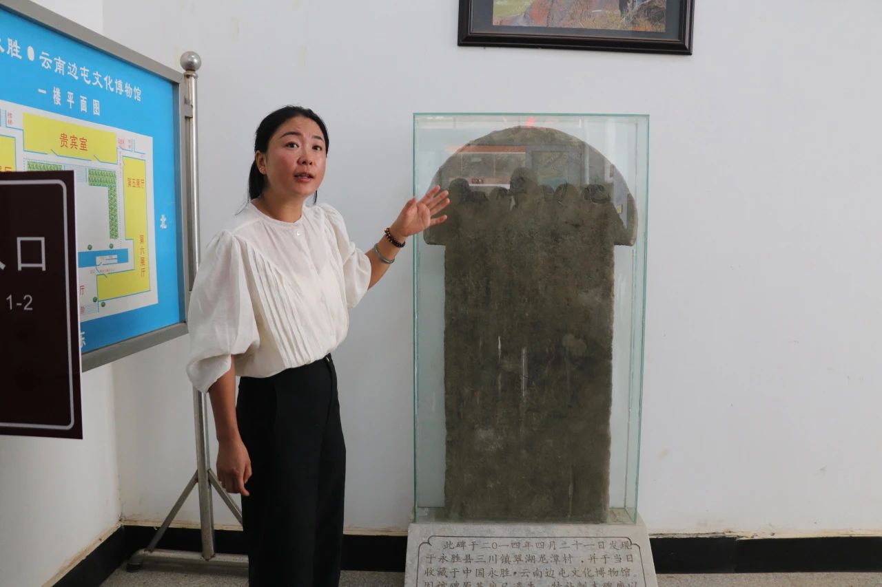讲好边疆故事,以边屯文化浸润民族团结之花。在永胜县边屯文化博物馆,在讲解员毛老师的讲解下,推普服务队通过大量文物和图片了解了各民族在屯垦戍边过程中交往交流交融的历史事实,更加坚定了推进铸牢中华民族共同体意识的自觉和决心,在新阶段持续开展“党的光辉照边疆 边疆人民心向党”“心向北京 拥护核心”教育实践活动,让民族团结之花在滇西北常开长盛。