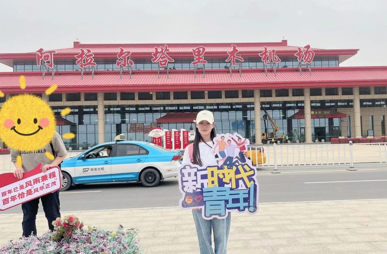 2023年毕业之际,她成功考上本科后,决定保留学籍休学一年,成为“大学生志愿服务西部计划”志愿者。积极响应团中央到西部去、到基层去、到祖国和人民最需要的地方去的号召,怀着“团结、有爱、互助、进步”的志愿精神踏上了一路向西的征途,踏上了西部那块梦想的土地。从彩云之南途径丰饶的四川盆地再俯瞰广袤无垠的新疆大地,横向跨越四千多公里国土去到新疆生产建设兵团第一师阿拉尔市、三五九旅传承地,青春志愿由此开始。