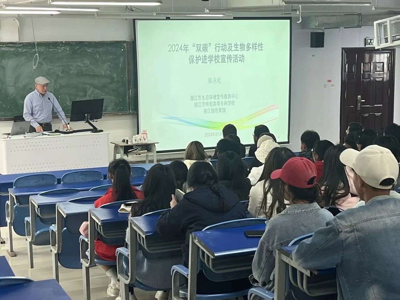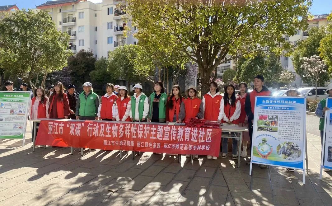 为深入学习贯彻习近平生态文明思想, 积极开展好应对气候变化“双碳” 行动以及生物多样性保护主题宣传下沉基层和深入一线,进一步向学校、 社区普及生态文明、绿色发展理念和知识。丽江市生态环境局生态环境宣传教育中心联合丽江师范高等专科学校、丽江绿色家园于2024年3月8日下午开展了生态环境保护志愿服务宣传活动。