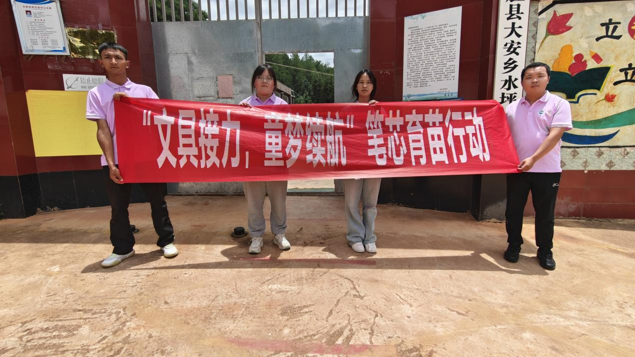 7月1日,我校“滇苗学堂”志愿服务团联合就业创业俱乐部社团,在永胜县大安乡水坪小学、宝坪小学成功开展“文具接力 童梦续航”公益行动。通过募集学习物资与开展特色支教课程,为两所偏远小学送去知识与温暖,校地联动谱写教育关爱新篇章。
