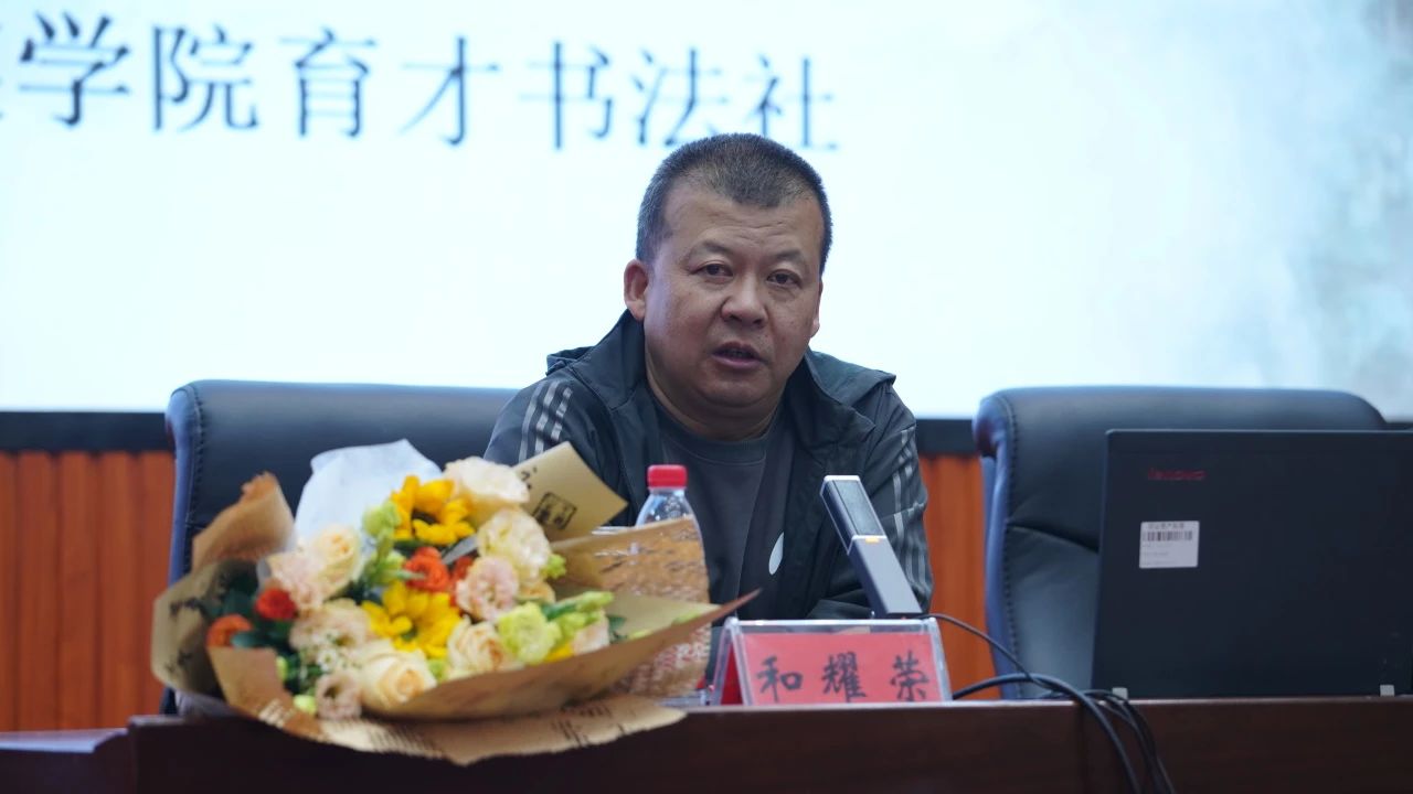 讲座上,和耀荣主席从中国书法的起源讲起,逐步阐述了甲骨文、金文、小篆、隶书、楷书、行书、草书等不同书体的特点和发展历程。同时,和耀荣主席还结合自身的创作经验,分享了书法学习的技巧和方法,鼓励大家积极投身书法艺术的学习和实践。