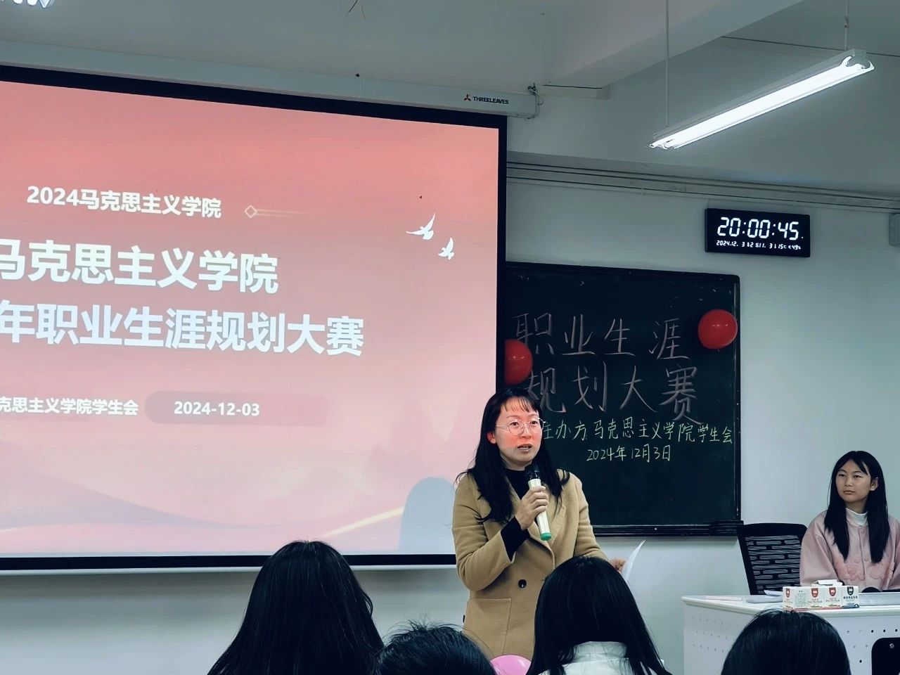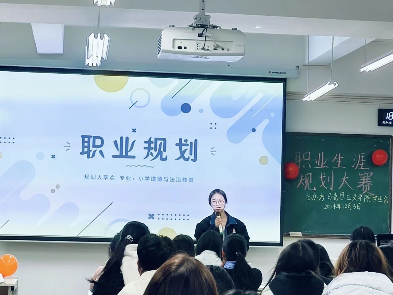 2024年高校毕业生总规模预计为1179万人,同比增加21万人,再创历史新高,就业形势依然严峻。当下,科技浪潮滚滚向前,催生无数新兴岗位;各行各业蓬勃发展,机遇之门频频开启。职业生涯规划,恰是破局“金钥匙”。为了让同学们精准导航、厘清方向、锚定目标,引导学生树立正确的就业观、择业观。马克思主义学院团总支学生会于2024年12月3日在博学楼举办了“2024年职业生涯规划大赛”。