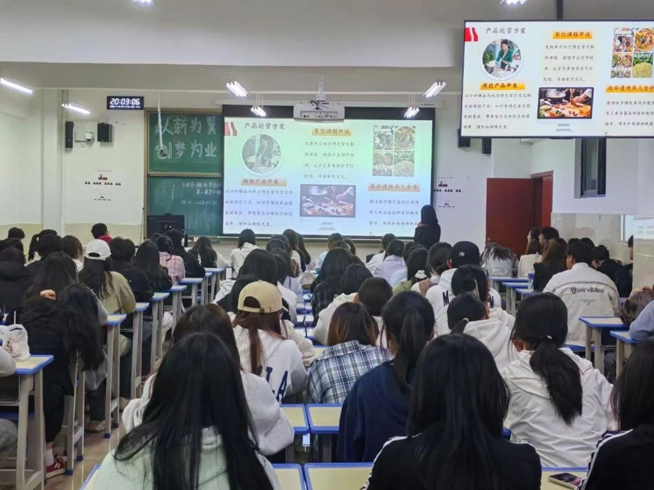 其中,张怀芬同学带来的餐饮美食创业项目令人印象深刻。她以 “舌尖上的美味” 为切入点,深入阐述了项目的独特魅力。从别具一格的餐饮课程开发,到富有创意的周边产品系列设计,再到浓厚品牌文化的传播策略,每一个环节都展现出对市场需求的精准把握和独特的创新构思。