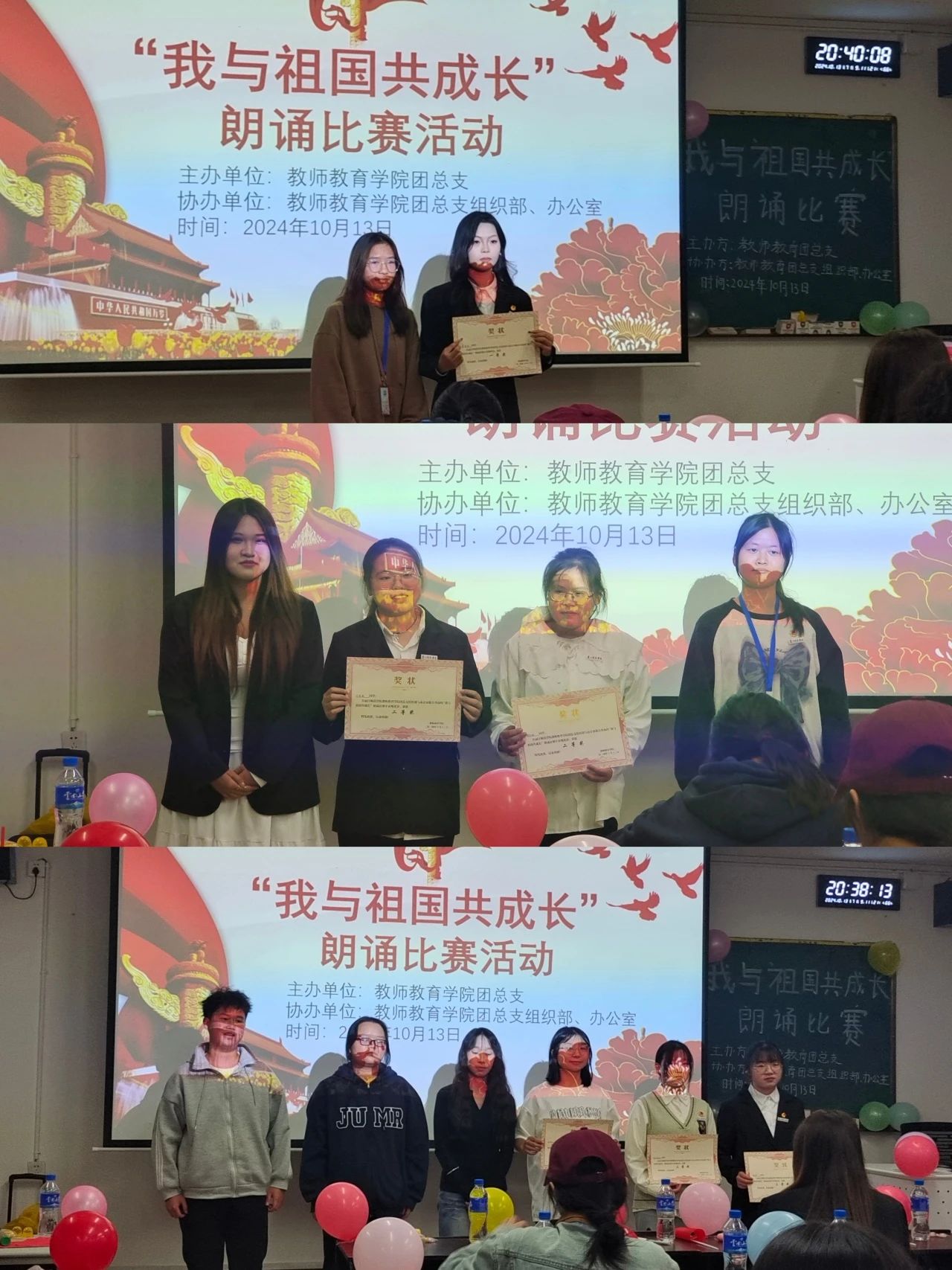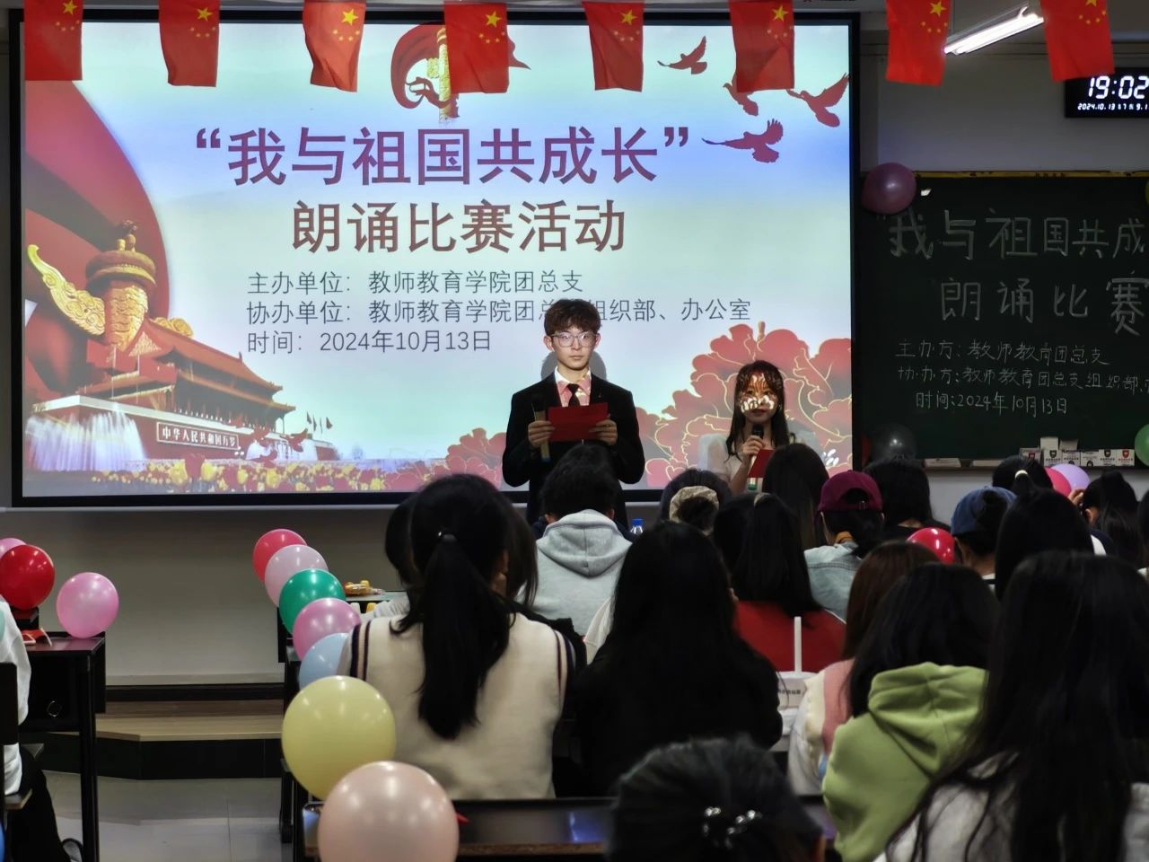 2024年10月13日,一场以“我与祖国共成长”为主题的朗诵比赛在教师教育学院团总支的组织下于博学楼428成功举行。此次活动旨在激发广大群众的爱国情怀,展现新时代青年与祖国紧密相连、共同奋进的精神风貌。