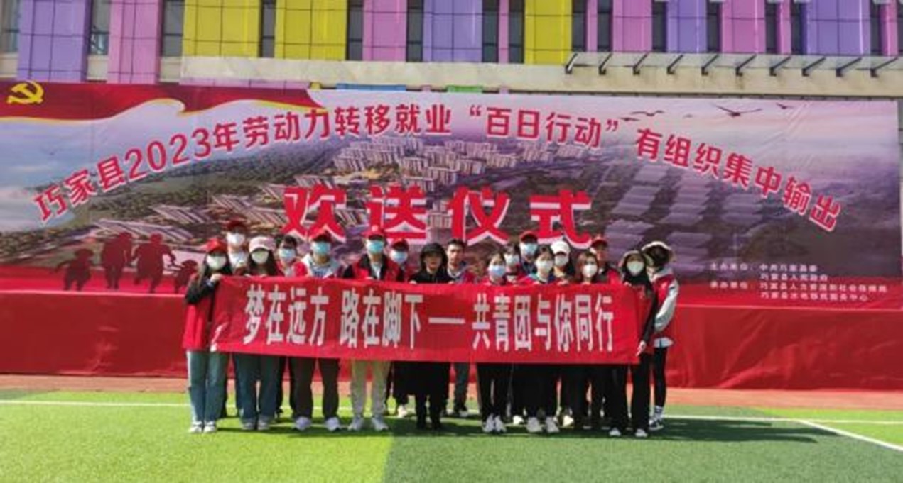 活动现场,志愿者们不惧骄阳,手举方阵牌,组成了17个乡镇(街道)列队,帮助务工人员有序排列,并积极参与到物资分发、行李搬运的志愿服务中,用诚挚的行动欢送外出务工人员,将火热的青春与奉献的精神交织在一起,以奋斗姿态激扬青春,不负时代,不负华年。