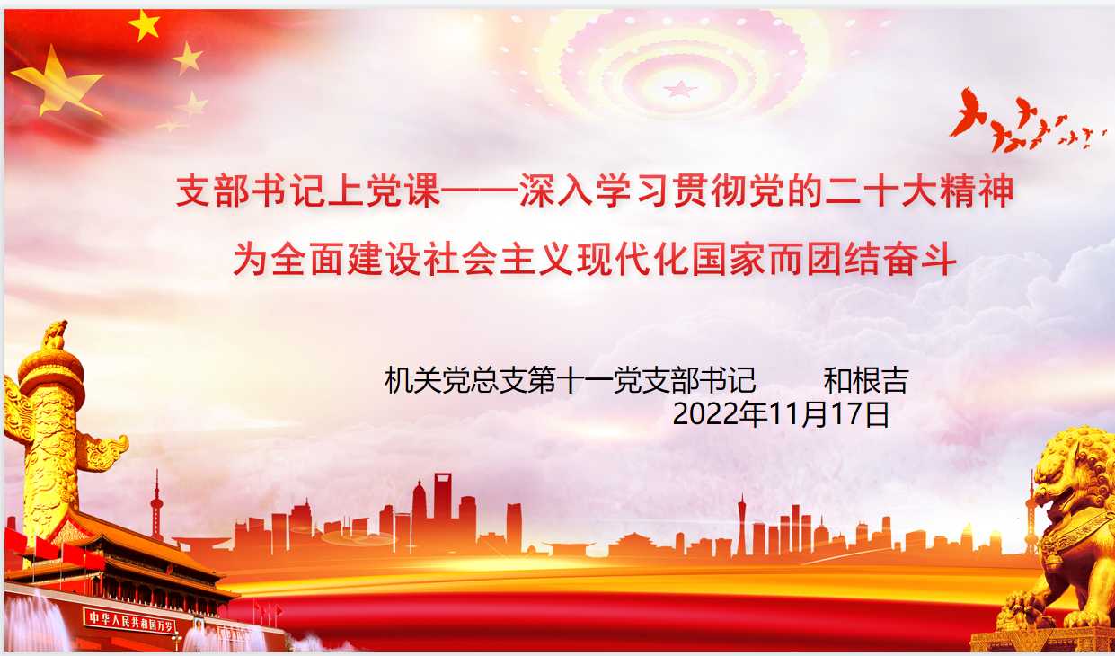 根据机关党总支安排,经支部研究,2022年11月17日在办公楼201支部活动室组织全体党员干部职工开展了政治理论学习,理论学习后党支部书记和根吉对全体党员开展了题为“深入学习贯彻党的二十大精神为全面建设社会主义现代化国家而团结奋斗”的党课。