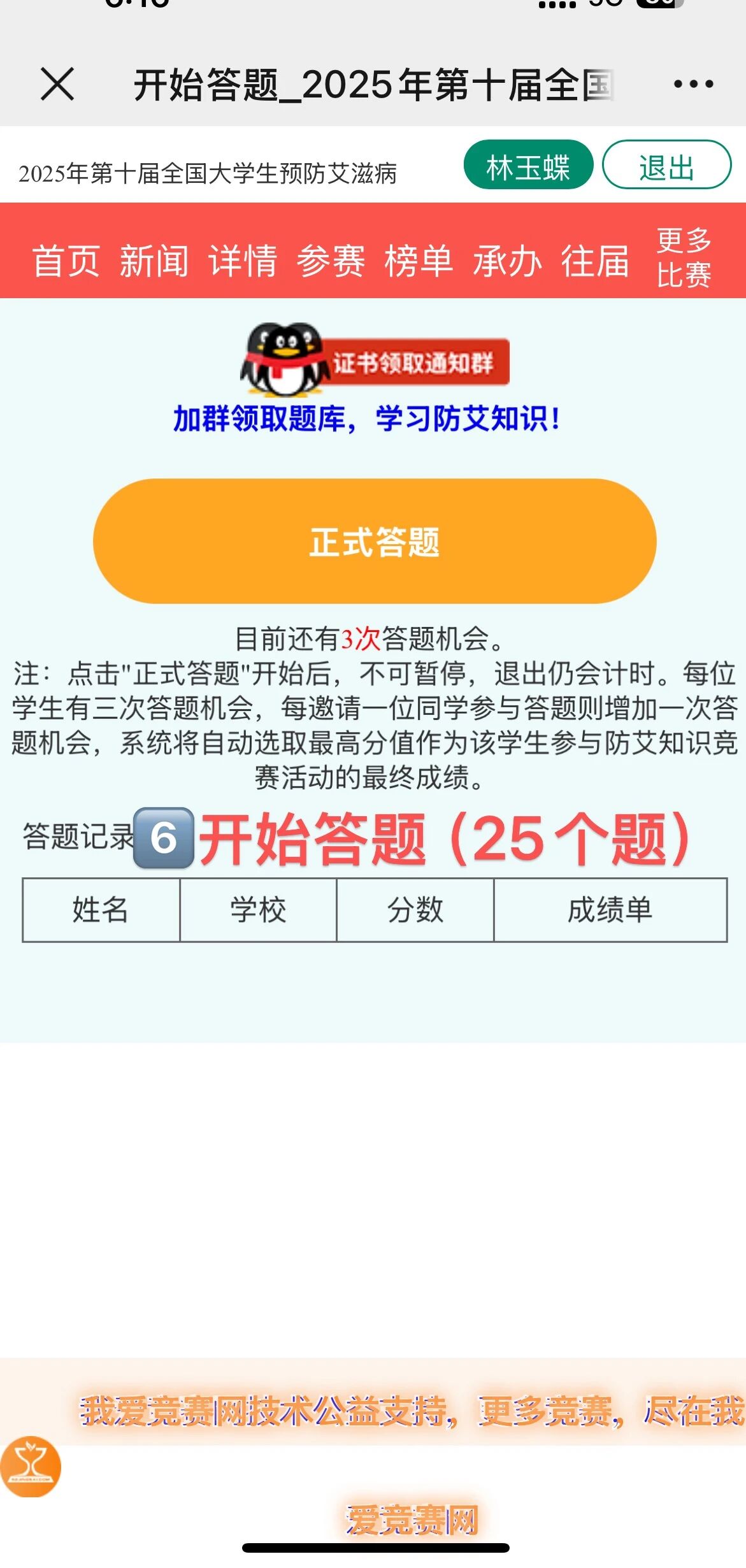 防艾同行,青春护航!参与本次竞赛完成答题并取得证书后,还可凭证书获取志愿公益积分,一举多得。诚邀全体同学积极参与,既能夯实防艾知识、提升自我防护能力,更能以知践行社会责任,为营造健康校园贡献力量,快来参与吧!