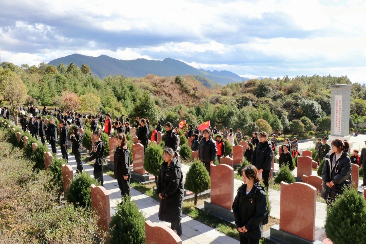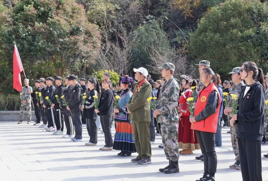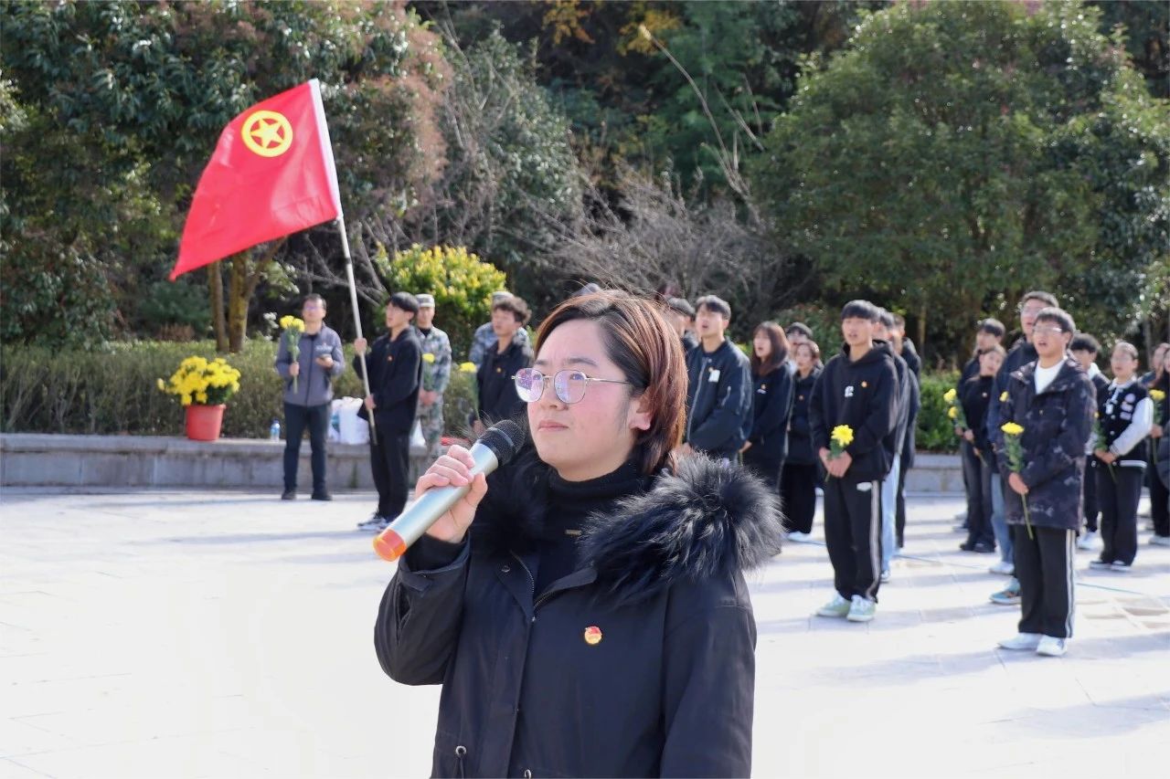 活动邀请到“丽江市老兵宣讲团”成员和尚武老师为团员和青年上了一堂生动的、沉浸式的主题微团课,厚植了团员和青年们的家国情怀和民族团结意识;同时,丽江师范高等专科学校团委副书记周江带领全体团员齐声诵读了《和平宣言》,饱含深情、铿锵有力的诵读声回荡在烈士陵园上空,传达着团员和青年们“请党放心,强国有我”的共同信念;团员代表廖一合宣读了《“勿忘国耻 缅怀先烈”国家公祭日倡议书》,倡议团员和青年们要铭记历史、勿忘国耻,要敬畏生命、珍视和平,要以史为鉴、自强不息。最后,团员和青年代表还参观了烈士陵园陈列室。