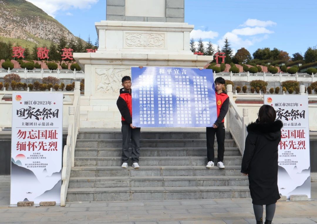 为大力弘扬以爱国主义为核心的民族精神,引导团员和青年树立铭记历史、勿忘国耻、珍爱和平的坚定信念,营造勿忘国耻、牢记历史,珍爱和平、圆梦中华的浓厚氛围,推动团员和青年主题教育走深走实,在第10个南京大屠杀死难者国家公祭日,团市委联合市退役军人事务局、丽江师范高等专科学校团委、丽江职业技术学院团委在丽江市烈士陵园开展2023年丽江市“勿忘国耻 缅怀先烈”国家公祭日示范主题团日活动。丽江师范高等专科学校和丽江职业技术学院的团员和青年共计200人参加活动,团市委副书记李万林主持活动。