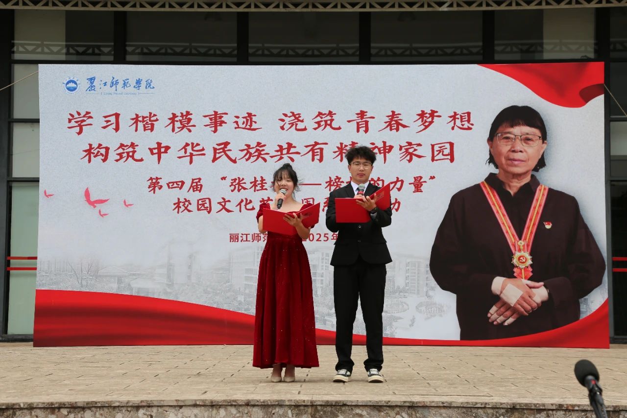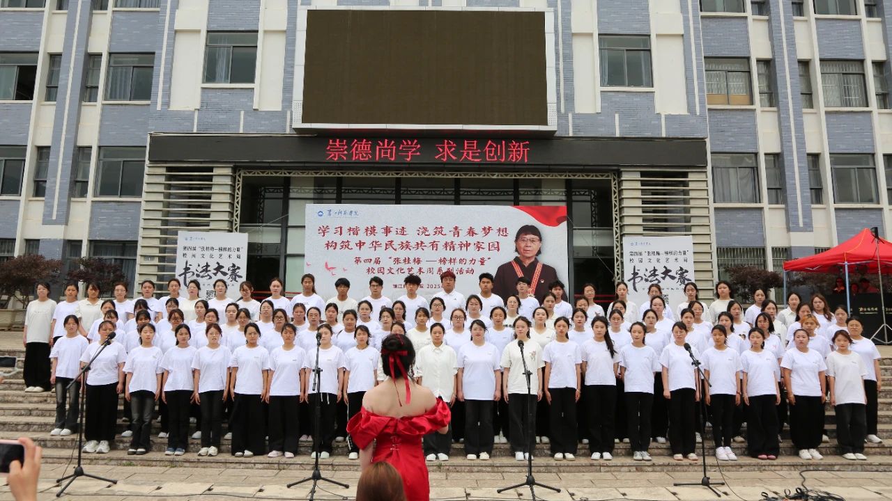 4月25日中午,学校第四届“张桂梅--榜样的力量”校园艺术周系列活动启动仪式在丽德广场举行。校团委、宣传部、学生处等部门负责人,文学与传媒学院全体教师,各学院团总支书记以及1000余名在校学生参加了开幕式。