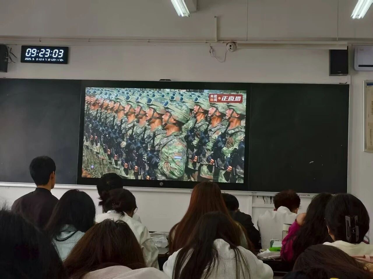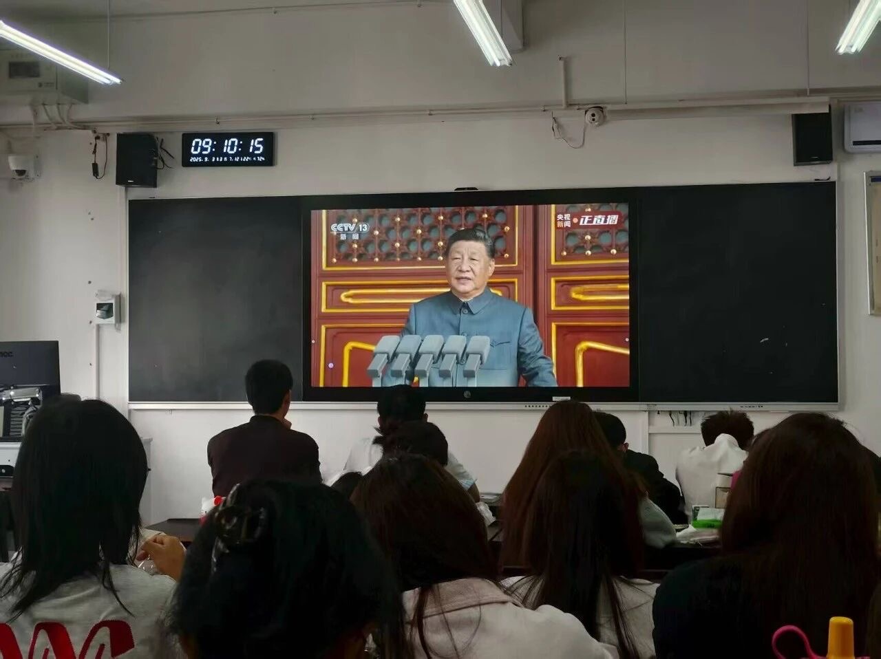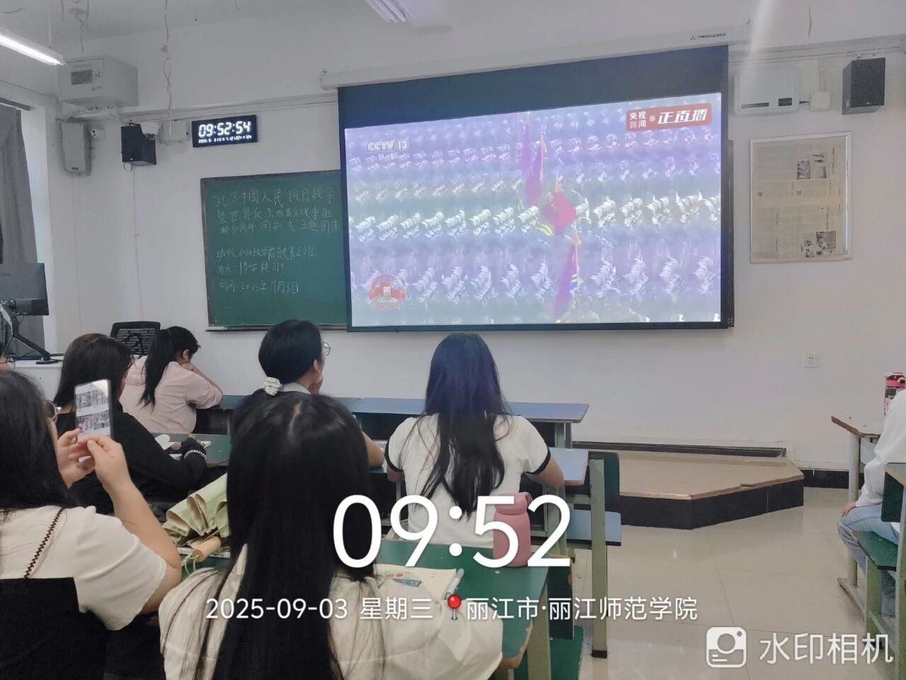 9月3日上午,丽江师范学院青年师生认真收听收看纪念中国人民抗日战争暨世界反法西斯战争胜利80周年大会直播盛况,反响热烈。